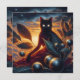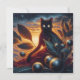 Otherworldly Cat Made of Stars: Surreal Artwork with Metallic Spheres and Vibrant Cosmic Sunset