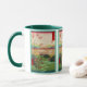 Otsuki Fields Kai outsuki no hara. (Otsuki fields in Kai Province). Beautiful Japanese Print Designer Mug. Print shows wild flowers and a small brook in a field, with mountains and a view of Mount Fuji in the background. From the series: Fuji sanjūrokkei : 36 views of Mount Fuji. This print has been beautifully restored and enhanced by us at Vintage East from a Japanese Woodcut Print created in 1858. We have also added a complimentary border around the image which really makes it an eye catching work of art. We also have this vintage print on other products too.
