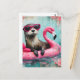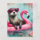Otter Floating on a Pink Flamingo Funny Collage Postcard