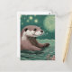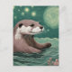 Otter in a Starry Night Ocean Sage and Rose Colour Postcard