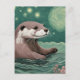 Otter in a Starry Night Ocean Sage and Rose Postcard