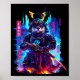 Otter Katana Cyberpunk Neon Samurai Japanese Art Poster