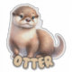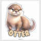 The word "OTTER" is displayed below the illustration in a bold, rounded, bubble-style font. The letters are light grey with a soft pink outline, complementing the otter’s earthy tones beautifully. A clean, white border surrounds the sticker, ensuring it stands out on any surface, from walls to furniture to personal items.