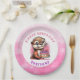 Pink Otter themed birthday party paper plates. Cute cartoon otter holding birthday cake. Add child's name in the personalise area.