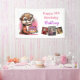 Pink Otter themed birthday party banner. Cute cartoon otter holding birthday cake. Add child's name in the personalise area.