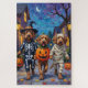 Adorable Otterhounds dressed in playful Halloween costumes carry pumpkin buckets while trick-or-treating under the moonlit sky. This festive design highlights the breed’s shaggy coat, long ears, and cheerful personality, perfectly capturing the spooky yet fun atmosphere of Halloween night. A rare and charming celebration for dog lovers and Halloween fans alike.