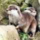 A watercolour design of a pair of very cute little otters.