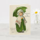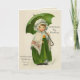 Young Irish girl holding a green umbrella and wearing a cap and shawl over her long green skirt. This vintage design has been hand retouched. Blank inside, can be used as invitation or in any way you prefer. More matching items in my store.