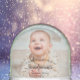 Our first Christmas as grandparents. Stylish Christmas keepsake snow globe with a photo of the new baby. Photo template via Pixabay licensed under CC0 and must be replaced with your own photo