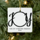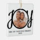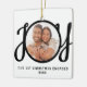 This keepsake First Christmas Engaged photo ornament is decorated with the word JOY in black, stylish script typography. Easily customisable.