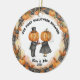 Celebrate your first Halloween 2025 as a couple with this charming Pumpkin Wedding Ornament w/ Wreath! Featuring a whimsical watercolor design of a pumpkin bride and groom exchanging rings, framed by a wreath of autumn leaves, candles, and mini pumpkins. Perfect for commemorating your engagement or wedding, this ornament is ideal for hanging on your tree or as a heartfelt keepsake. Personalise it with your names or special date for a unique touch. Great for Halloween lovers and newlyweds—order now to treasure this 2025 memory!