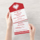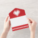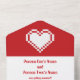Bring touch of geeky fun to your event with this all-in-one wedding invitation and RSVP card. On the inside you will find a white pixelated heart on a bright cherry background above a section with some sample text that can be customised for your special day. The lower section of the invite features a removable, postcard sized piece that has some sample RSVP text sitting above a cherry red border with a pattern of 8-bit hearts scattered across the bottom. Outside, a similar border of video game-themed hearts on cherry can be found below the areas where you would add stamps, standard, and return addresses for both the invitation as a whole and the returnable RSVP section. The flap used to fold over and seal the card has a single 8-bit heart on a bright red background with a sample set of initials that you can customise for a final personal touch that shows off your love for gaming and each other. Be sure to check out the rest of the Our 8-Bit Hearts in Cherry set for other coordinating products, including return address labels.
