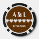 Give the guests, bridesmaids, groomsmen, or anyone else attending or helping with your geeky wedding or special event a fun treat with these customisable poker chips. One side of the poker chip features a white pixelated heart on a rich chocolate brown background. The other side has a sample set of initials and date separated by a pattern of retro video game related 8-bit hearts. The sample text can be customised with your own details or a special message of your choice to create a unique and personal token to commemorate your big day. This design will match any product from the Our 8-Bit Hearts in Chocolate line so that you can make your gaming themed wedding or special event as coordinated as you like.