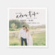 Modern Script Stylish Handwritten Calligraphy Our Adventure Begins Photo Wedding Save the Date Napkins