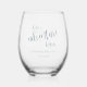 Our adventure begins teal typography wedding stemless wine glass