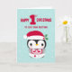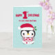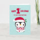 Send your Christmas wishes to your dear brother (from plural you) with this card of an adorable little penguin wearing a Santa along with a bib and diapers for his first Christmas. © Ness Nordberg