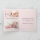 A sweet and modern baby girl folded birth announcement card with contemporary soft grey typography against a pastel pink background. The front features a favourite photo of your newborn, "our dream come true" underneath in script, and the baby's full name, arrival date and birth stats. On the inside you can add three additional photos, parent and sibling names and your personalised message.