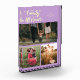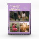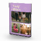 Modern and whimsical family memory photo block featuring 3 photos with a text that says "our family is all heart" with tiny hearts. Lemon yellow and wisteria.