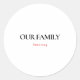 A simple and meaningful personalized classic round sticker celebrating family. Add a year to mark a special moment, anniversary, or new beginning.