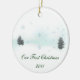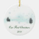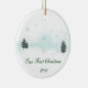 A simple but elegant landscape on an ornament commemorating 'our first Christmas'.