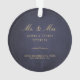 Elegant vintage style newlyweds First Christmas as Mr and Mrs personalised keepsake tree ornament with faux gold typography script and golden foliage and leaves over a dark navy blue background. +++++++++ A pretty keepsake gift for a new wedding couple.