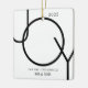 This modern Our First Christmas As Mr & Mrs Photo Ornament is decorated with the word JOY in black on a white background.