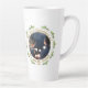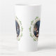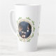 Our First Christmas as Mrs. & Mr. Script Wedding Photo Latte Mug. Modern holiday design for newlyweds with a photo in the circle frame, pine branches and text in a modern golden script Our first Christmas as Mrs. & Mr. quote and wedding year. Insert your photo into the template and personalise the names and year.