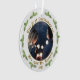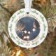 Our First Christmas as Mrs. & Mr. Wedding Photo Ornament. Modern holiday ornament for newlyweds. The design has a photo in the circle frame, pine branches and text in a modern golden script Our first Christmas as Mrs. & Mr. quote and wedding year. Insert your photo into the template.