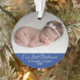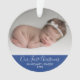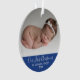 The double sided ornament features a favourite baby photo with a blue coloured band along the bottom.