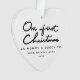 A memorable Xmas gift for new parents. This holiday season, send out this chic keepsake photo Christmas ornament to new parents to commemorate the birth of their child. The ornament features "Our First Christmas" in a beautifully hand-lettered black font on white background. Personalise the ornament by replacing the sample baby name and year.