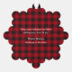 Rustic Our First Christmas Couple Photo Holiday Ornament Card - Red Buffalo Plaid Background. This is a greeting card that is also an ornament.