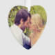 Elegant heart-shaped holiday ornament for a couple's first Christmas together features a photo on the front and custom text with snowflake design accent on the back. Rose gold / blush pink background color and fonts can be customized.