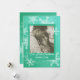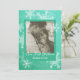 A lovely, modern holiday card design featuring a festive emerald background with intricate white snowflakes. This customisable card allows you to add a family photo and the text "Our First Christmas" in a flowing cursive script, along with the family name and year for a personal touch. Perfect for newlyweds celebrating their first Christmas together, this keepsake card is a heartfelt way to commemorate their first holiday season as a married couple. It's an ideal gift or greeting for the season, adding warmth and joy to the occasion.