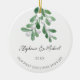 Celebrate your first Christmas as an engaged couple with this stylish photo ceramic ornament.
