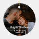 Our First Christmas Engaged Whimsical Script Photo Ceramic Tree Decoration