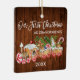 Modern Brush Script Our First Christmas as Grandparents Ornament includes Watercolor Gingerbread Train with candy, cookies and pines. Rustic Country Wood Print.