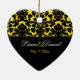 This yellow, white, and black damask heart-shaped, ceramic ornament matches the wedding collection on this site, and would make a nice keepsake of your special day.