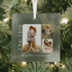 Minimal and modern simple three photo keepsake photo glass ornament to commemorate your first Christmas married. The design features a simple minimal design with a three square photo design collage to display your special wedding photo. Add your name along the bottom. Design by MoodthologyPapery