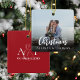 Celebrate your first Christmas together with this elegant Our First Christmas Mr and Mrs photo ornament featuring simple calligraphy script typography and a customisable couple photo. A meaningful personalised keepsake perfect for newlyweds, weddings, engagements, or first holiday memories as a married couple.