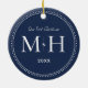 Our First Christmas Newlyweds Monogram Navy Blue Ceramic Tree Decoration