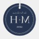Our First Christmas Newlyweds Monogram Navy Blue Glass Tree Decoration