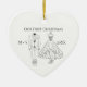 Celebrate your first Christmas with timeless charm using this elegant photo ornament. Design features a beautifully line art image of a wedding dress on a hanger, groom suit, and shoes. Personalize it with your initials and the year in the front and add your photo on the back, setting the tone for a heartfelt and memorable keepsake. Makes a perfect present to give to family and friends to remember the special day.