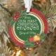 Create your own personalised First Christmas engaged ornament in red, green, and gold classic Christmas colour. Fun Christmas gift for fiance or engaged couple. Reads 'Our First Christmas engaged' in white, elegant lettering with couple's personalised names and year on green background. Red quilted look border with faux metallic gold inner frame and poinsettias, Christmas ornaments and pine boughs. Same on back side. Special Christmas couple keepsake would be excellent Christmas wedding shower gift. We have more personalised Christmas gift ideas in our Zazzle.com/angela65 shop, as well as couple Christmas ornaments and classic holiday decor.