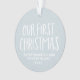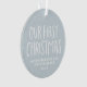 Celebrate and commemorate your twins' first Christmas with this sweet and simple photo ornament. Featuring "our first Christmas" in playful type on a snowy background, this cute ornament also has room for custom text for the names and year and also a photo on the reverse side. This first Christmas ornament makes a great gift for new parents or can be bought for your own family!