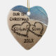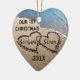 FYI: The heart shape in acrylic is in stock! Easily add your own custom names or any text (shown example says: "Our 1st Christmas" , and just add the year desired) with names of the special couple or the bride and groom newlyweds in the hearts to personalise this beautiful popular heart shape ornament with an original photo of two hearts written in the sand along the blue ocean water to signify love and romance. Great concept for love, travel, just married, and upcoming summer save the date beach weddings. A fun, cute, personal and unique keepsake ornament to give to that special someone, girlfriend or boyfriend, bride and groom or any sweethearts couple. This design is on one side and is available with the design on both sides as well. See our big collection of gifts in this design in the MVDesigns store.
