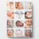 Personalised father's day picture plaque featuring 11 photos for you to change to your own, the cute saying "our first fathers day together", a red heart, names, and the year.