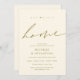 Our first home, housewarming party invitation card. Planning a housewarming party in celebrating your new home with your family and friends? Invite your guests with this beautiful and perfect modern calligraphy in classy gold themed housewarming party invitation card. Add your details.