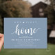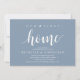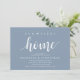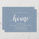 Our first home, new home housewarming party invitation card ("our first home") in dusty blue theme, with cute little heart. Planning a housewarming party in celebrating your new home with your family and friends? Invite your guests with this beautiful and perfect Rustic calligraphy themed housewarming party invitation card.