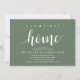 Our first home, new home housewarming party invitation card ("our first home") in sage green theme, with cute little heart. Planning a housewarming party in celebrating your new home with your family and friends? Invite your guests with this beautiful and perfect Rustic calligraphy themed housewarming party invitation card.