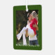 Your photo framed in green on the front with Our First Married Christmas text and the year. The back has your names and wedding date framed with mistletoe. Photo Credit: Photography © Storytree Studios, Stanford, CA
